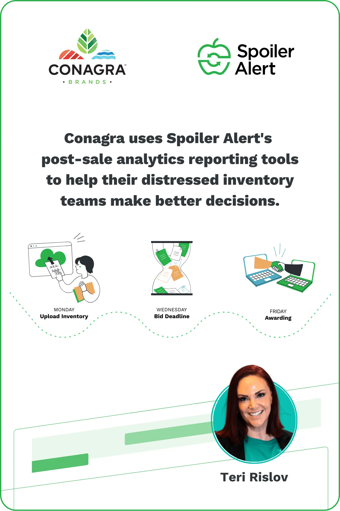 Conagra uses Spoiler Alert's post-sale analytics reporting tools to help their distressed inventory teams make better decisions.