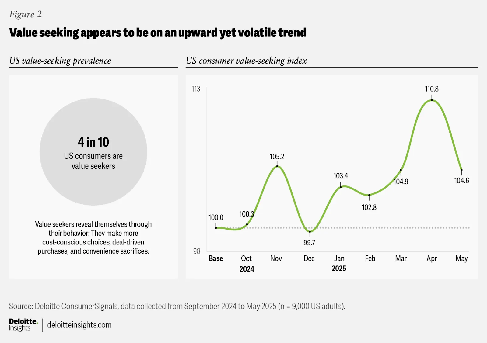 McKinsey's August 2025 ConsumerWise survey found that 75% of U.S. consumers planned to trade down in some form. Deloitte's ConsumerSignals research, tracking 900,000 consumer data points, found that four in ten Americans now qualify as "value seekers" – and that the behavioral effect is strongest among households earning $200,000 or more, who planned to cut discretionary spending by 50–60% relative to their peers.