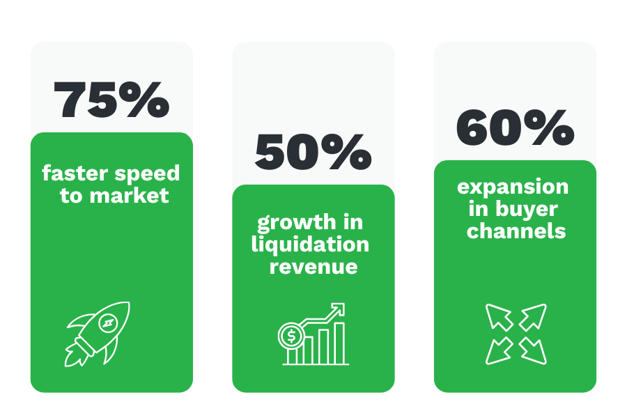 The right tools, that provide the right data, at the right time, can make a big difference. At Spoiler Alert, we see 75% faster speed to market for excess inventory, driving more than 50% growth in liquidation revenue and a 60% expansion in buyer channels.